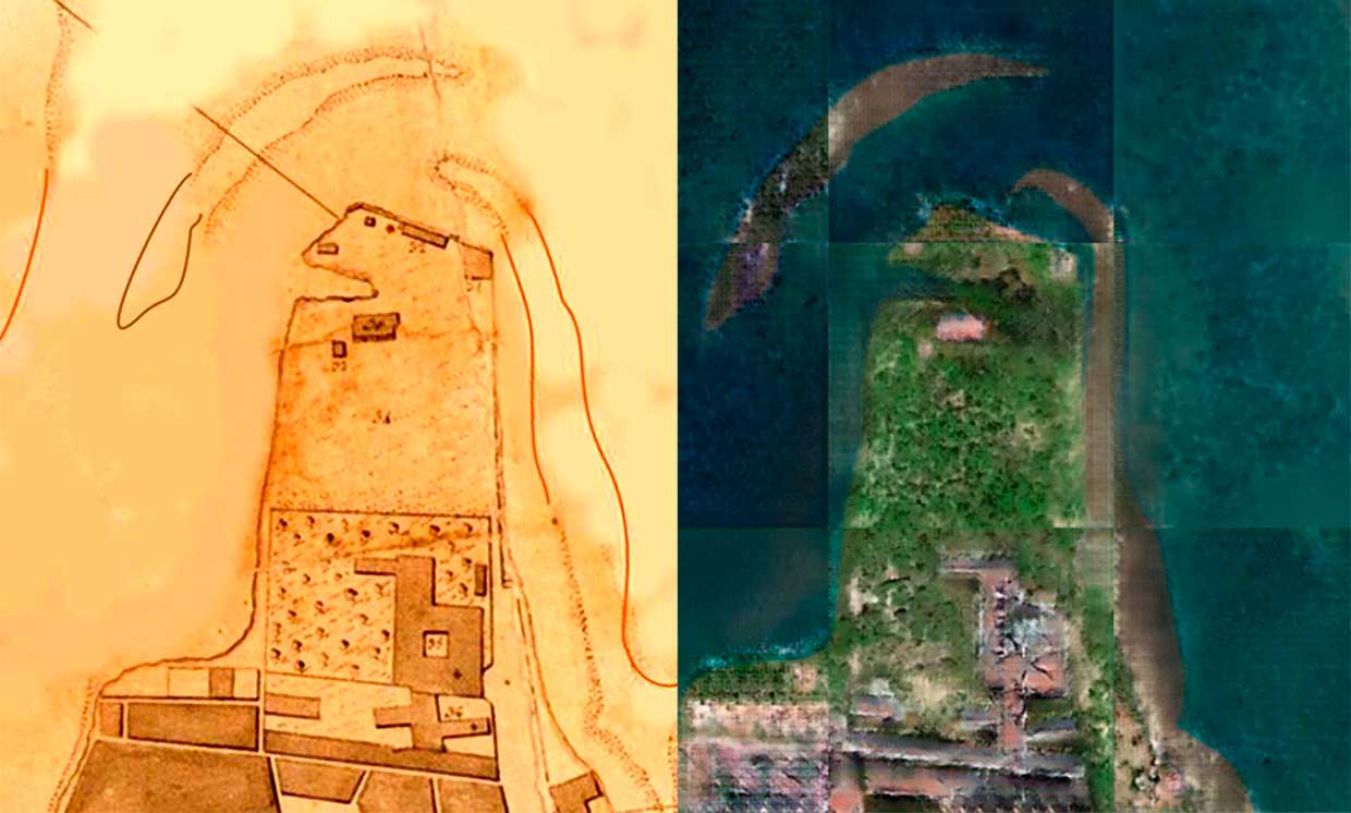 The tool they used takes old line-drawing maps and attempts to create a sort of satellite image based on them using a Generative Adversarial Network; GANs essentially attempt to trick themselves into creating content they can’t tell apart from the real thing.