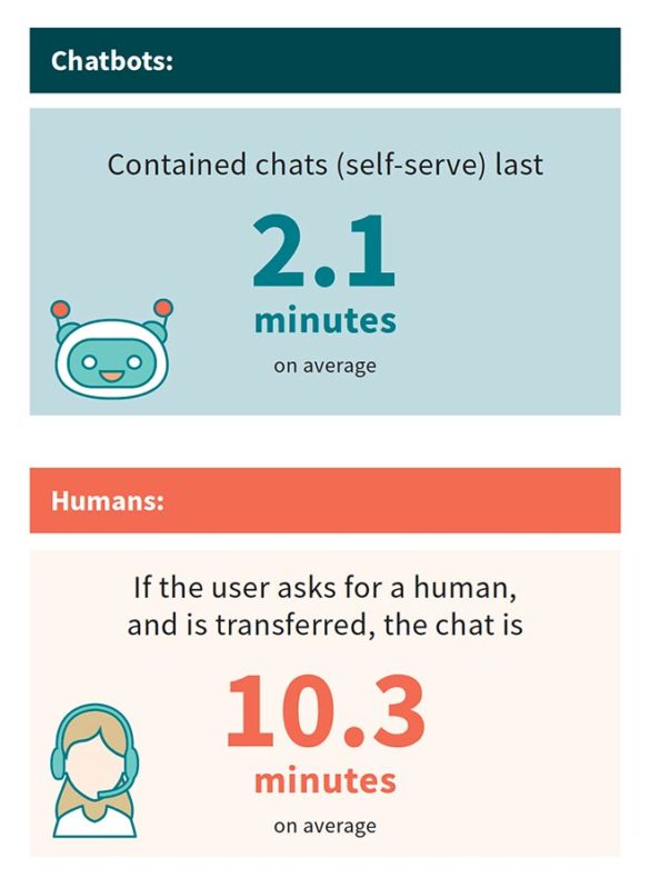 For routine transactions, self-serve chat is five times faster than the human agent sessions.